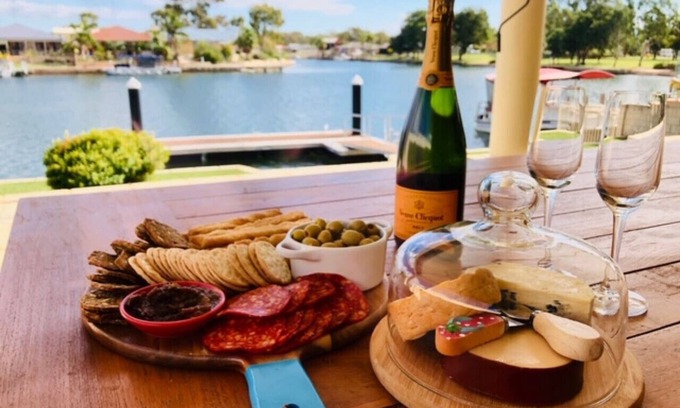 This newly listed 3 x 2 pet friendly canal home with its own floating private jetty is waiting for your booking now. Three bedrooms-master bedroom is a King bed, Queen beds in the other two bedrooms, also two fold out single beds available for extras. Pool table in the garage for your use. Cook in the modern kitchen or use the large outdoor area with plenty of seating and BBQ, wide frontage property to enjoy the views of the dolphins, pelicans and ducks who are frequent visitors. The house is decorated with flair and modern furnishings. There are three Kayaks provided during your stay to explore the waterways with or catch crabs off the jetty when in season, fish in the local Murray River or cruise in your boat to some of the local restaurants and hotels in the area - your stay in the region will be remembered no matter how you spend it.