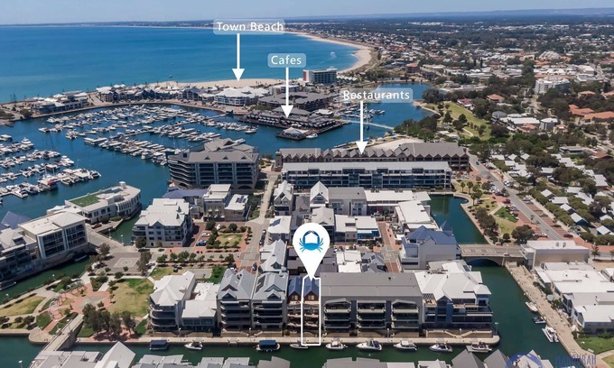 At the end of Jubilee Mews is a delightful canalside park and Keith Holmes Reserve with its small sandy beach and marina playground is just 400 metres up The Lido. Facing this little beach is a stretch of waterfront cafes and restaurants, offering a range of cuisines, and there are many more along Mandurah Terrace to the south, just 1.5km away.