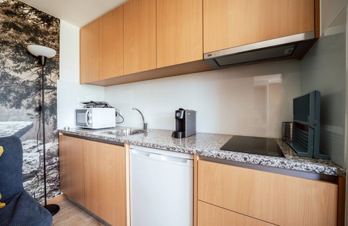 A sofa bed and air conditioning are featured at this 1-bedroom, 1-bathroom rental. Bathroom amenities include a hair dryer and shampoo. The kitchen is equipped with a refrigerator, as well as a microwave, a toaster, and paper towels.