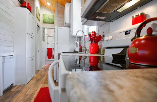 Come and enjoy Turtletown Creek wrapping around the lot all in a Tiny House Experience! Caney Creek may be Tiny but it is packed with all the bells and whistles. Dog Friendly- Small Dogs under 20 lbs only.