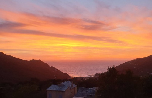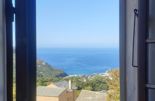 CAP CORSE. 8 MN from the Beach. Corsican house with authentic charm, renovated, of 100 m2 on 2 floors, with its terraces with sea and mountain views, and its shaded Pergola under the Vine! It is located in a traditional village of Cap Corse, 8 minutes from the Beach and a small picturesque fishing port (possibility to get there on foot by a marked path, or to descend on foot by our beautiful river and its freshwater pools, or go there by car !!). There are also several Beaches around according to your tastes (ALBO, NONZA, ALISU, GIOTTANI ...). Nautical activities from the port of Giottani, boat and kayak rental. LE MARINELLA Restaurant and Snack, on the beach. Volleyball, Pétanque, Card Tournaments etc.