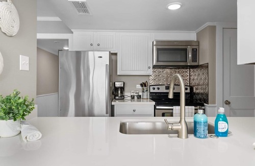 Welcome to Cap'm Ken's! Newly listed 1 bedroom 1 bathroom condo located on the 3rd floor of Laguna Reef at Rockport. Enjoy the private balcony with panoramic water views and the natural shoreline with a lagoon and an abundance of bird life from the balcony and the living room. You will definitely enjoy that view from a comfortable living room and watching the large flat screen television. There is plenty of seating for everyone. The kitchen is fully stocked with all cookware. There is also an icemaker, microwave and dishwasher and coffee maker. The kitchen has a bar that opens it up to the rest of this beautiful condo. You will be able to visit with friends or family while cooking or just enjoy the view. The primary bedroom has a king size bed and large closet and dresser for your vacation gear. The bedroom has a flat screen television with basic cable. A queen size sleeper sofa with memory foam mattress and additional 2 inch memory topper will be sure to provide a great night's sleep for 2 more guests. There is also internet and wifi available at Cap'm Ken's. As a guest of Cap'm Ken's you will have access to the swimming pool, hot tub, 1000 ft. fishing pier with fishing lights, several shared charcoal grills, and the beautiful lagoon area at the water. There are also 3 large ice machines located on the first, second and third floors. There are also coin operated washers and dryers on the second and fourth floors in the same room as the ice machines.