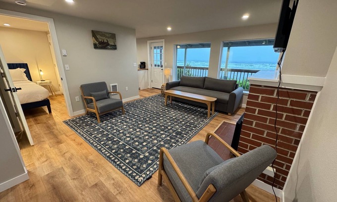 Experience the magic of the Oregon Coast in this freshly renovated oceanfront duplex cottage with gas fireplace, perfectly positioned on pristine Big Stump Beach. Step outside your door onto miles of sandy shoreline, where the rhythmic waves and coastal breeze create the perfect backdrop for your beach getaway.