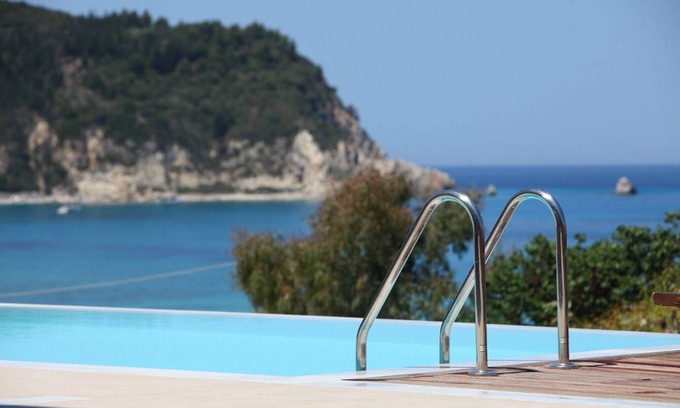 The 9 x 5 cutting edge infinity pool is right in front of the terrace. Guests will spend long lazy afternoons lying in the sun, enjoying a refreshing drink and taking in the gorgeous view across the sea to Agios Nikitas village.