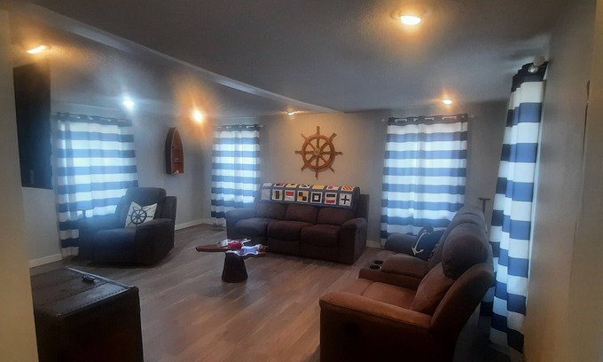 Captain's Quarters- Clean, comfortable, convenient! is located in Magnolia Bluffs. Captain's Quarters- Clean, comfortable, convenient! provides accommodation, featuring Bedding/Linens, Wellness Facilities, Fireplace/Heating, among other amenities. This House features Bedding/Linens, Wellness Facilities, Fireplace/Heating, to make your stay a comfortable one.