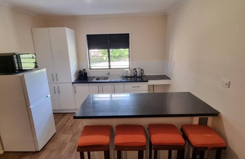 Two story House, with 3 bedrooms upstairs, sleeps 6, in 2 x queen beds, 1 x double bed. Full Kitchen with coffee maker, full bathroom with bath tub and shower. Downstairs 1 large bedroom- 1 x Queen bed and 1 x double bed with single bunk bed, Kitchenette with stove top microwave and coffee maker.Laundry with washing machine and dryer. 2 x lounge rooms, one on each level. BBQ and outside dining area. Room to park several cars and boat parking, as well!. Captain's retreat is in the middle of Cooktown , within walking distance of shopping center, pubs , clubs, beach and attractions