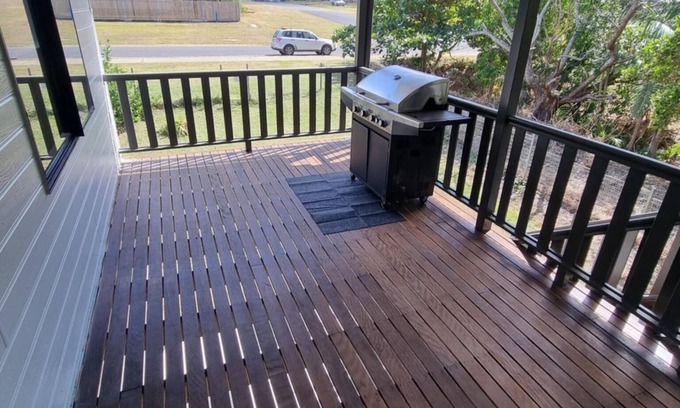 Captain's Retreat- Officer's Quarters is located on first floor of house. 3 large bedrooms can be found to accommodate six people - with 2 x queen beds and 1 x double bed. Full bathroom with shower and tub, separate toilet. Dining area to suit 6, with kitchen bench seating available as well. Full kitchen with oven and stove top, microwave, coffee machine and full fridge for cooking up a storm for your stay. Relaxing lounge area with Smart T.V, games and books. a lovely deck and veranda, with outdoor dining and BBQ area. Captain's Retreat is a 2 to 5 minute walk to the centre of Historic Cooktown, it's sites and attractions, and 2 minutes to local shopping centre.
