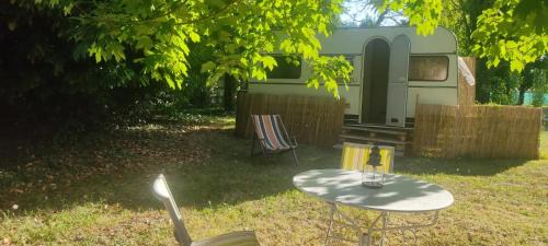 Caravane années 80 dans la verdure au Domaine des Oiseaux is located in Vandré.