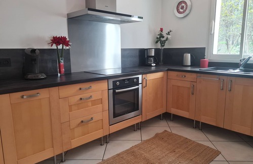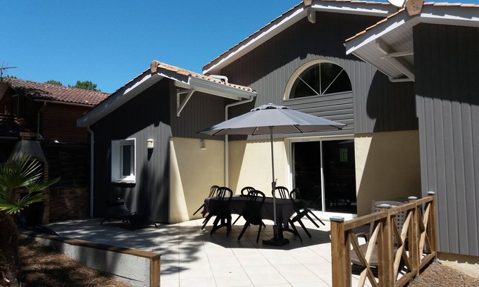 House ideally located, 800 m from the lake of carcans 'maubuisson' and 4 km from the ocean, with a view on the forest. Beds are made on arrival.