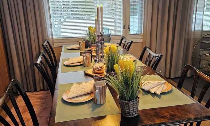 GeneralElectric kettle, Dishwasher, Ping - 48.4, Separate dining area, Kitchen, Number of bedrooms - 4, Square feet - 1722, Iron/ironing board, Television, Bed count minimum 4, Pet-friendly room, Number of living rooms 0, Toaster, Bed sheets provided, Hair dryer, Free WiFi, Square meters - 160, Towels not available, Coffee/tea maker, Microwave, Highchair, Bathtub or shower, Cookware, dishware, and utensils, Washing machine, Private bathroom, Heating, Freezer, Bed count maximum 4 |