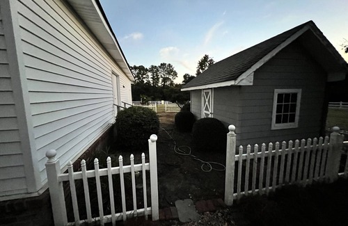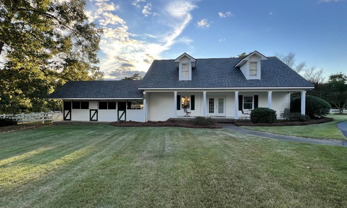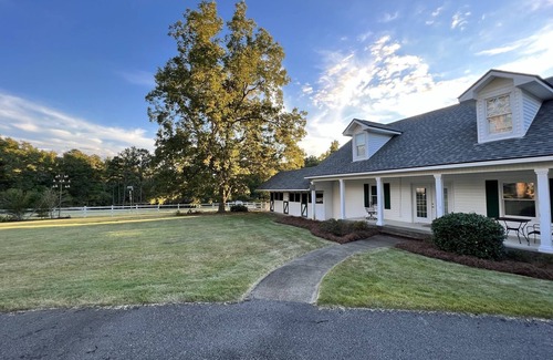 The Cottage is located adjacent to the main farm house that is also available for lodging. The cottage is nestled right outside city limits. This is a hidden treasure w/ breathtaking gardens, trees, muscadine vineyard & a beautiful view of a pond. There’s a shared pool that you can use. Check availability as it could be closed due to cleaning or scheduled events. Enjoy the fire pit as the sun goes down. Close by is a golf course, white water rafting, bike rentals. Ft.Moore is less than 25 miles.