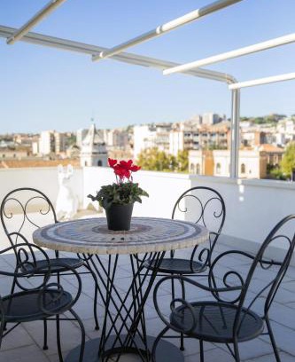 Food & DrinkTea/Coffee maker, Bottle of waterBathroomToilet paper, Walk-in shower, Bathtub or shower, Bidet, Free toiletries, Shower, Hairdryer, Towels, Private bathroom, ToiletMedia & TechnologyFlat-screen TV, TVGeneralPrivate entrance, Tile/Marble floor, Trash cans, Ironing facilities, Heating, Air conditioningOutdoorsTerrace, BalconyKitchenCoffee machine, Electric kettle, Kitchenware, Oven, Cleaning products, Washing machine, Dining table, Kitchen, Refrigerator, Stovetop, Wine glassesBedroomWardrobe or closet, Walk-in closet, Childrens' cribs, LinensViewCity view, ViewLiving AreaDining areaBuilding CharacteristicsPrivate apartment in buildingRoom AmenitiesDrying rack for clothing, Socket near the bed, Clothes rack, Hypoallergenic pillowAccessibilityAccessible by elevator |