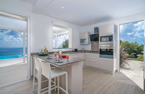 Offering a breathtaking panoramic view of the Caribbean Sea, the Villa Carpe Diem is fully oriented towards the horizon: a 180-degree view from the bay of Sainte-Luce to that of Sainte-Anne, with the island of Saint Lucia in the background. A true postcard landscape! With a terrace overlooking the sea and an infinity pool, the villa gathers all the elements to fully enjoy the present moment under the Martinique sun.Inside my villa in Sainte-Luce