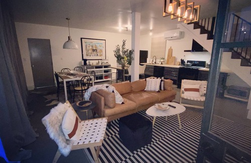 This is our newly updated Carriage House with 2 bedrooms, 1 bath, full kitchen, and open concept living space. Add on our airstream to sleep 3 more. Private patio area, beautiful views, pool, and courts available. Ask about our pool house too