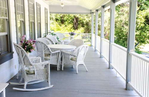 The Historical Carrville Inn sits on 25 acres in the Trinity Alps of Northern California. This rural and private setting is the perfect venue for weddings, family reunions, or corporate retreats. Your group will be the only guests at the property, with full access to our exceptional accommodations, including: 9 bed/8 bath inn and 2 bed/1 bath cottage. The Inn boasts a commercial kitchen fully stocked with essentials, a wet saloon, and a dining room that comfortably sits 24 people. The cottage (additional fee) next door has two more bedrooms, a bathroom, as well as a living room and kitchen. Enjoy the grounds including a private pool, lawn games, a firepit and bbq pad, and so much more!