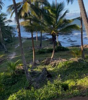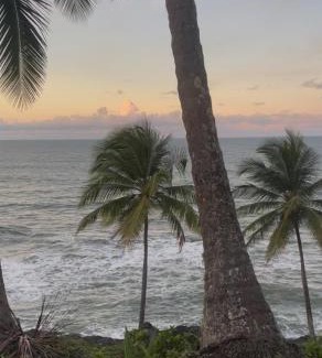 Casa Amar com vista para o mar offers accommodations in Uruçuca, 1.3 miles from Pe de Serra Beach and 19 miles from Itacare Bus Station. Both free Wifi and parking on-site are available at the homestay free of charge. Staff on site can arrange a shuttle service. There is a dining area and a kitchen complete with a fridge, a stovetop, and kitchenware. The property offers sea views. Vegetarian and vegan breakfast options with warm dishes, local specialities, and fruit are available. Guests can also relax in the garden or on the sun terrace. Ilheus Bus Station is 26 miles from Casa Amar com vista para o mar, while Wharf is 20 miles from the property. Ilheus/Bahia-Jorge Amado Airport is 28 miles away, and the property offers a paid airport shuttle service.