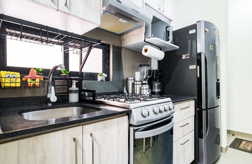 Un departamento equipado con 3 recamaras 2 baños y terraza privada