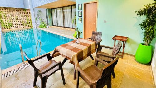 This 2 Bedrooms House is suitable for tourists and travelers. It has several amenities that would guarantee your comfort. These amenities include: Internet, Pet Friendly, Pool, and several others. This is a good star rated property and has over 1 review with the average score of 10 . Coming to Indore and needing a place to stay? Be it for work or for leisure, consider staying at this House for your next visit, you will surely love it.