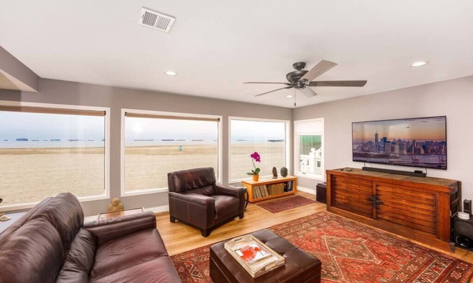 Classic beachfront home with stunning sunset views. Take it easy at this unique and tranquil seaside town with all amenities within a short distance. You will have access to full kitchen and open concept living area. Two bedrooms, 2 bathrooms, perfect for up to 4 guests. This home shares a main entrance with the upstairs unit, but is thereafter a private oasis. Seal Beach is 30 minutes to Disneyland and Knott's, 7 miles to Aquarium of the Pacific. PLEASE READ: From Thanksgiving Until Easter (Changes every year) there is a Berm on the beach in front of the house. (Please check all the photos attached) Contact Don Cavanaugh after approval/booking. one of the few small town beach communities left. Walk into town, main Street. Shop, Food or take a walk on the pier. Walk, it's the best. We have a couple beach bikes if your interested. PLEASE READ: From Thanksgiving Until Easter (Changes every year) there is a Berm on the beach in front of the house. Possibilty background screening and short term rental agreement needed, case by case. 48 Hours to be completed after booking.