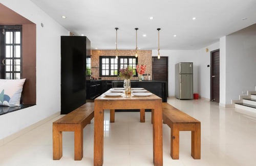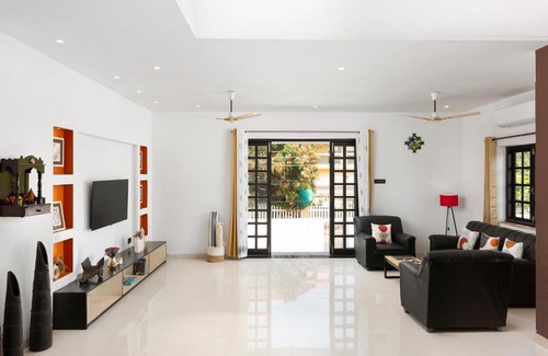 Featuring river views, Casa Belo - 4BHK Villa with Private Garden & River View features accommodation with a terrace and a balcony, around 7.4 km from Church of Saint Cajetan. Located 7 km from Basilica Of Bom Jesus, the property provides a garden and free private parking. This air-conditioned villa comes with 4 bedrooms, a flat-screen TV, a dining area, and a kitchen with a fridge and a minibar. Towels and bed linen are featured in the villa. Chapora Fort is 22 km from the villa, while Thivim railway station is 25 km away. The nearest airport is Dabolim Airport, 25 km from Casa Belo - 4BHK Villa with Private Garden & River View.