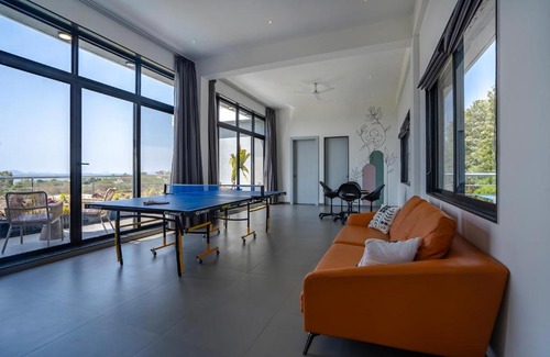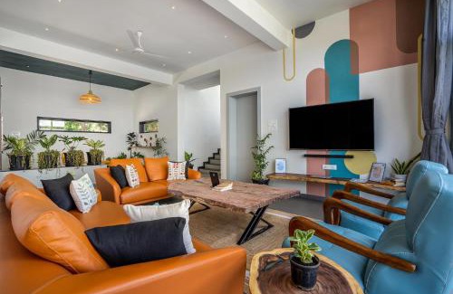 Providing a garden, Casa Boho by StayVista - Contemporary design, Farm-view, Swimming pool & Indoor games for a chic retreat features accommodations in Nashik. This property offers access to a terrace, free private parking, and free Wifi. Pandavlena Caves is 10 miles away and Shri Kalaram Sansthan Mandir is 11 miles from the villa. The air-conditioned villa consists of 4 separate bedrooms, 5 bathrooms with a hair dryer, a seating area, and a living room. Guests can take in the views of the pool from the balcony, which also has outdoor furniture. For added privacy, the accommodation features a private entrance. In addition to a year-round outdoor pool, the villa also provides an indoor play area. Someshwar Temple is 5.7 miles from Casa Boho by StayVista - Contemporary design, Farm-view, Swimming pool & Indoor games for a chic retreat, while Sundarnarayan Temple is 10 miles away. Nashik Airport is 22 miles from the property.
