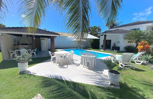 Located in Camaçari, this 7-bedroom, 9-bathroom vacation home lets you experience it all. Fans of nature and the outdoors will love being 34 minutes by car from Guarajuba Beach and 46 minutes from Flamengo Beach. You'll easily make the 36-minute drive to Jaua Beach or the 41-minute drive to Interlagos Beach.