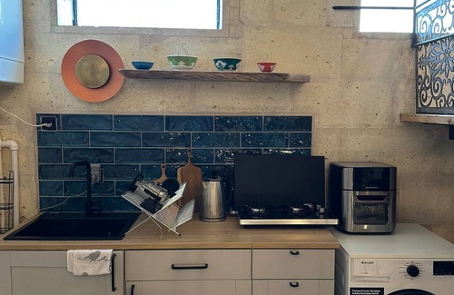The apartment includes a fully self-contained kitchen/dinning area, a large bathroom with double showers and sinks. The apartment is perfect for experiencing the traditional cave style living after enjoying Cappadocia.