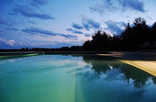 Casa Cicerali is set above a stunning valley of olive trees and vineyards, 4km from Cisternino, one of the most beautiful villages in Italy. The property is a restored 2 bedroom stone farmhouse, which combines the architectural integrity of the original building with contemporary design. The house is semi detached but not overlooked. Renowned local architect, Daniele Corsaro, designed the renovations. Within the surrounding 5 acres of land, there are numerous fruit trees, an almond grove and olive trees separated by meadow and dry stone walls. A bespoke stone patio with swimming pool sits at the end of a gravel path for the sole use of the guests of Casa Cicerali.