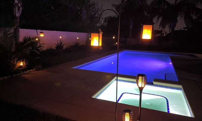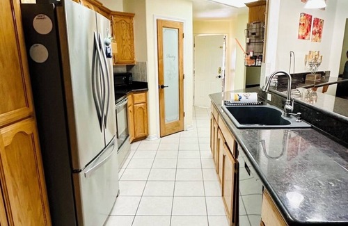 Forget your worries in the spacious and serene Casa Colibrí located 3.2 miles from the Valley International Airport, Harlingen, TX. You get 2700 sqft. with: 4-bedrooms, 2.5-bathrooms, 2 car garage, 2 driveways, play/bedroom/office space, dining area, & laundry room. Centrally located in Harlingen, TX, 78550, it offers everything you need to relax and recharge. Enjoy your downtime by taking a dip in the private sparkling pool, or soaking in the jacuzzi hot tub with hydro massage.