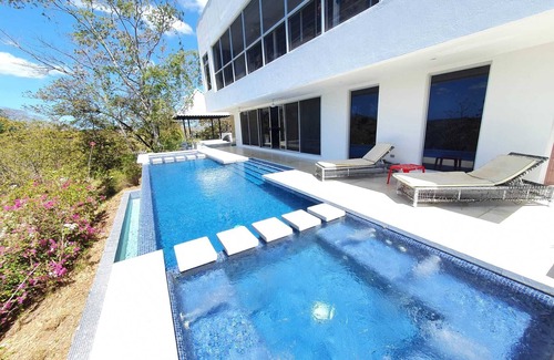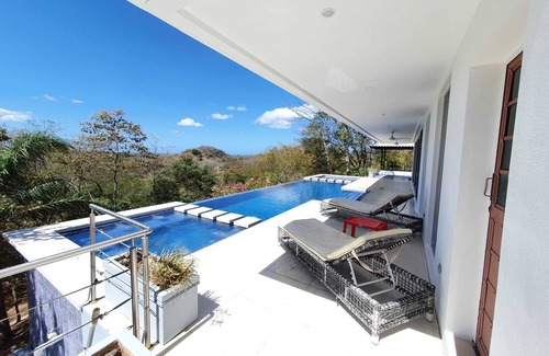 Beautiful villa with infinity pool containing a jacuzzi and a shallow pool for children. Located in an exceptional setting overlooking the jungle in the center of fauna and flora. A few minutes from the most beautiful beaches Avellanas, playa Negra, Flamingo and Tamarindo with all that is bar restaurant and small shops.