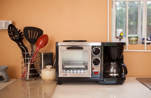 Our cozy 1 bedroom apt comes complete with all amenities for the seasoned traveller including Wifi on entire property, USB charging ports, flat screen tv, with cable, fully equipped kitchen with stove/oven, fridge, microwave, toaster oven, electric kettle, rice cooker, wine glasses and some starters of coffee/tea, creamer, sugar, salt, black pepper, 1 bottle water and dishwashing soap. Iron & board, blow dryer on request, books and board games are also in the apartment. Our beautiful garden has outdoor dining and lounge spaces under the fruit trees for you to enjoy your meals while watching the humming birds feeding or birds just taking a bath. You may pick mangoes, lychee, oranges, limes, lemons, bread fruit, tangerine, grapefruit, avocado pears, bananas, beans, callaloo, herbs and many varieties of mints. We also have a wide collection of orchids, bromeliads and water gardens. Centrally located just 4 minutes drive away from Northern Caribbean University and the town centre, you can hail a taxi from our gate and easily shop for groceries, and fresh produce from the local market. Nearby are ATM, gas station, bars, restaurant, pharmacy, Reliance Centre Shopping Mall, historical courthouse, parish church, bus station including Knutsford Express coach bus taking you to most major cities and towns across the island. Tours can be arranged for coffee and rum plantations, Lovers Leap, YS Falls, Appleton Rum Tour, Taste of Jamaica, Milk River Spa, great houses, Black River Safari etc. Airport transfer book 24 hours in advance or rental car delivered to your apartment.
