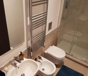 Food & DrinkTea/Coffee maker, Bottle of waterBathroomBody soap, Toilet paper, Shampoo, Toilet, Shower, Towels, Bidet, Private bathroom, HairdryerMedia & TechnologyTV, Mobile hotspot deviceGeneralTrash cans, Fire extinguisher, Ironing facilities, Air conditioning, Iron, Hardwood or parquet floors, Private entrance, Smoke Alarm, HeatingOutdoorsBalconyLiving AreaDesk, SofaKitchenElectric kettleBedroomLinens, Wardrobe or closetBuilding CharacteristicsPrivate apartment in buildingRoom AmenitiesFeather pillow, Clothes rack, Adapter, Drying rack for clothing, Socket near the bedPhysical distancingSingle-room AC for guest accommodationCleanliness & disinfectionHand sanitizer |