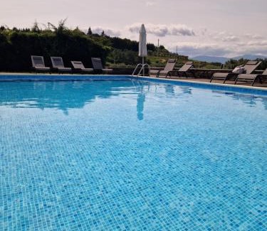 Food & DrinkBottle of water, Chocolate/Cookies, Tea/Coffee maker, FruitBathroomToilet, Free toiletries, Toilet paper, Towels, Bidet, Shower, Shampoo, Body soap, Walk-in shower, Bathtub, Private bathroom, Bathtub or showerMedia & TechnologyCable channels, TV, Flat-screen TVGeneralPrivate entrance, Tile/Marble floor, Trash cans, Heating, Air conditioning, Fire extinguisherOutdoorsPatio, Private pool, Outdoor furniture, Outdoor dining area, Balcony, Barbecue, TerraceKitchenWine glasses, Toaster, Microwave, Dishwasher, Refrigerator, Electric kettle, Oven, Stovetop, Dining table, Kitchen, Washing machine, High chair, Coffee machine, KitchenwareLiving AreaSofa, Dining area, Sitting areaViewGarden view, Pool view, Mountain view, ViewBedroomChildrens' cribs, Linens, Wardrobe or closetAccessibilityUpper floors accessible by stairs onlyRoom AmenitiesSocket near the bed, Non-feather pillow, Drying rack for clothing, Clothes rackEntertainment & Family ServicesBoard games/puzzlesPool and SpaPool with a viewLayoutWindow |