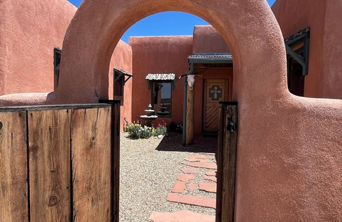 Casa de Suenos (House of Dreams) is an adobe style home situated on the high mesa at the North edge of Taos with spectacular views of the Taos mountains and sunsets. With 1,650 square feet of living space it can comfortably accommodate up to 6 people and is eclectically and tastefully decorated. There is also an in-house studio art gallery with work for sale.