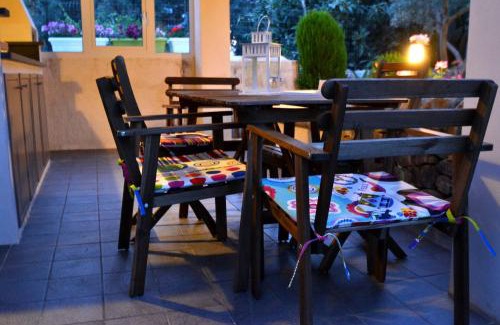 BathroomShower, Toilet, Additional bathroom, Hairdryer, Bathtub or shower, Toilet paper, Private bathroom, Bidet, Towels, Shower cap, Shampoo, Free toiletries, Guest bathroom, Body soapMedia & TechnologyFlat-screen TV, Satellite channels, TVGeneralCarbon monoxide detector, Tile/Marble floor, Smoke Alarm, Lockers, Iron, Heating, Ironing facilities, Air conditioning, Mosquito net, Private entrance, Soundproof, Key access, Fire extinguisher, Trash cansKitchenCleaning products, Kitchenette, Oven, Kitchenware, High chair, Washing machine, Stovetop, Dining table, Toaster, Kitchen, Wine glasses, RefrigeratorLiving AreaDesk, Sofa, Dining area, Sitting areaOutdoorsBarbecue, Outdoor furniture, Patio, Outdoor dining area, TerraceViewQuiet street view, Garden view, View, Inner courtyard viewBedroomWardrobe or closet, Childrens' cribs, LinensAccessibilityEntire unit located on ground floor, Entire unit wheelchair accessibleBuilding CharacteristicsDetachedRoom AmenitiesAdapter, Sofa bed, Clothes rack, Socket near the bed, Drying rack for clothing, Non-feather pillowEntertainment & Family ServicesBaby safety gatesFood & DrinkBottle of water, Chocolate/CookiesPhysical distancingSingle-room AC for guest accommodationCleanliness & disinfectionHand sanitizer |