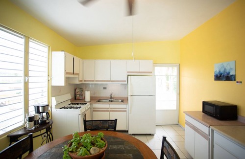 Fully furnished beachfront home on the 2nd floor located on a private gated family lot at the end of a dead end. The two bedrooms include king beds, ceiling fans and A/C. Enjoy relaxing in the hammocks on the front patio with palm trees and ocean breeze. You might be lucky enough to see a whale, dolphin or manatee. Or enjoy using the BBQ on the back patio (gas or charcoal) complete with outdoor dining table. The full kitchen is fully stocked to make all of your meals at home or you can walk to the local bakery or restaurants. Feel free to use the outdoor shower after visiting the tidepools or undeveloped mile long beach where you can fish, snorkel, swim, surf. We have boogieboards, surfboards, kayaks, SUP's and beach gear available for use. This house is centrally located on the west side of the island so it's easy to take daytrips north, south or central to explore caves, waterfalls, lighthouses. Downstairs is a separate apartment and we respect their privacy and desire for little to no noise as they will do the same in return.