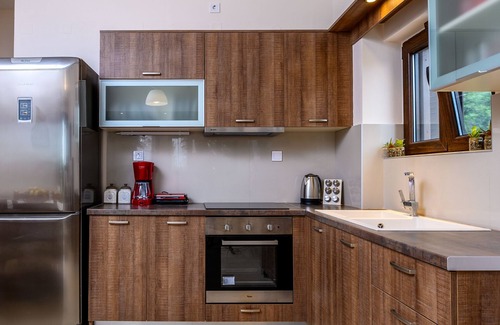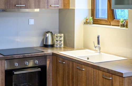 Fully equipped kitchen (vitro-ceramic hotplates, refrigerator, oven, kitchen utensils)