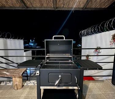BathroomToilet, Free toiletries, Towels, Toilet paper, Guest bathroom, Shower, Bathtub or shower, Body soap, Private bathroomMedia & TechnologyTV, Flat-screen TVKitchenRefrigerator, Washing machine, Dining table, Coffee machine, Kitchen, Cleaning products, Kitchenette, StovetopOutdoorsBarbecue, Outdoor dining area, Terrace, Private pool, Outdoor furniture, BalconyLiving AreaSitting area, Dining area, SofaGeneralTrash cans, Key card access, FanViewView, Garden viewBedroomLinens, Wardrobe or closetBuilding CharacteristicsDetachedRoom AmenitiesSocket near the bed, Sofa bedPool and SpaPool towels, Rooftop pool, Pool with a view |