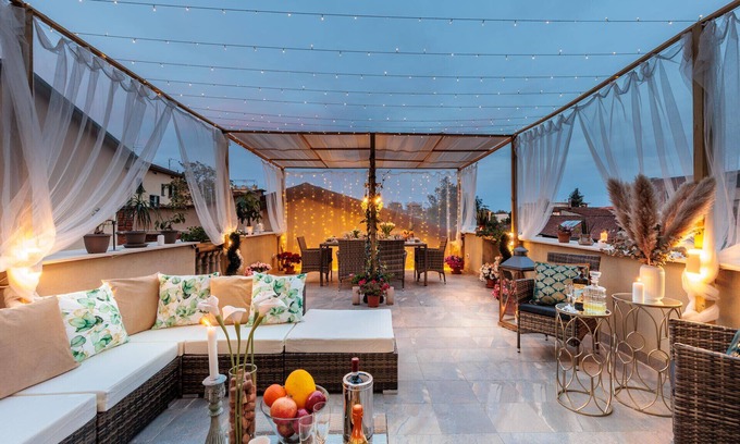 The structure of CASA GINA offers a harmonic reinterpretation of contemporary luxury design where each element is carefully placed in its natural environment. Prestigious and iconic design elements coming from the best of the breed of Italian design manufacturers are mixed together with state of the art of technology standards and surprisingly natural and warm lighting effects to create a special sense of equilibrium and an elegant atmosphere.The superlative location by the walls of Lucca and by the Lucca train station unveils a unique getaway with easy access to sightseeing both in Lucca and all around Tuscany and Italy including Florence, Pisa, Cinque Terre, Versilia, Viareggio, Forte dei Marmi, Livorno, Pistoia, Siena, Bologna, Venice, Milan and Rome. You can easily park your car along the street in front of the apartment, or use a free public parking lot that is only 300 meters away.Layout.Located one floor above the ground level, the apartment features generous spaces, fully equipped kitchen, luxury bathrooms, air conditioning, 100Mega optic fibre WIFI connection, an exclusive grand private terrace fully furnished.The train station in just a couple of minutes walk away ,which this urban retreat a perfect place for exclusive business travellers or friends and families looking for an elegant, private but modern short or long term stay in central Lucca or as a primary base to explore this marvellous country.* If you have a late arrival, make sure to inform us ahead of time. You can experience the flexibility of a late check-in, available until midnight for a surcharge of 50 euros payable in cash upon arrival. For those enchanted by the allure of Lucca after midnight, a check-in option is also offered with a surcharge of 100 euros.Not included in the rental price:Tourist tax (mandatory and required by local municipality)Midstay and/or weekly cleaning and change of towels and linensBaby cot's linensIncluded in the rental price:Final CleaningTowels and linensElectricityGasWaterInternet WifiHigh chair (upon request at booking)Babycot (upon request at booking)