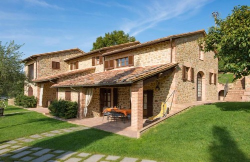 Country house "Casa Graziani". 3 houses in the residence. 9 apartments in the residence. In the hamlet Schiacciato 13 km from the centre of Città della Pieve, 16 km from the centre of Cetona, 46 km from the centre of Perugia, 10 km from the lake, in the countryside. For shared use: property 4'000 m2 (fenced), well-kept garden with lawn and trees, swimming pool (16 x 8 m, depth 120 - 180 cm, seasonal availability: 01.May. - 30.Sep.). Table tennis, fireplace, children's playground. In the house: sauna (extra). Fitness room, table football, bicycles available. Parking on the premises. Supermarket 3 km, bus stop 400 m, railway station "Chiusi Scalo" 7 km.