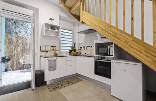 Fully equipped kitchen: Fridge, oven, Dolce Gusto coffee machine, blender to prepare meals like at home