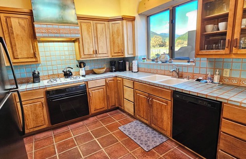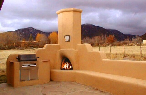 The large flagstone patio with "Outdoor Kiva Fireplace" extends your living space and offers grand outdoor evenings summer and winter. Light up the fire, have lively campfire conversations or simply stargaze and be warmed by your "Kiva". Slip into the steamy hot tub at day's end after skiing, hiking, biking, golfing, fishing, shopping, sight seeing and stargaze some more in this upscale Taos vacation rental offered exclusively by Premiere Properties.