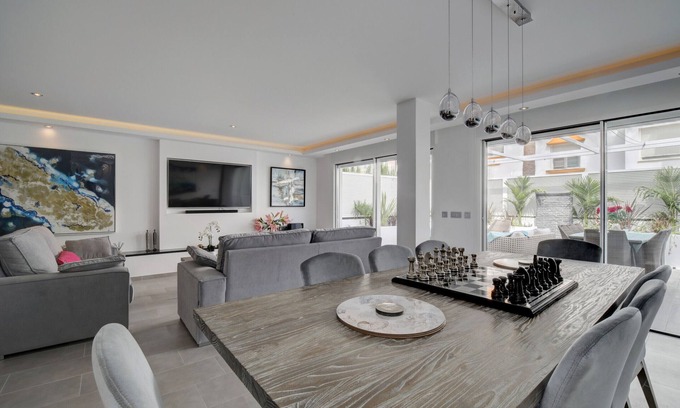Absolutely stunning, spacious, and superbly well-appointed, this three-story, four-bedroom townhouse is located in the exclusive 5-star community of Marbellamar, just steps away from the golden sands of Casablanca Playa, one of the finest beaches along Marbella’s prestigious Golden Mile, one of the most sought-after addresses in Europe.Please note: Marbellamar is a peaceful, residential area made up of stylish townhouses in a prime location. Out of respect for our neighbors, Casa Luna is not suitable for stag or hen parties or guests planning loud gatherings. We kindly ask all guests to respect quiet hours and maintain a peaceful atmosphere, particularly in the communal areas.Casa Luna is situated on one of the best streets in Marbellamar. The beach is just 100 meters from the front door, and across the road is a park, ensuring both privacy and tranquility. Parking is typically available on the street, but guests also have access to private, barrier-protected roads within Marbellamar, where parking spaces are always guaranteed. To the east, a short walk along the Paseo Marítimo (beach promenade) brings you to the port and old town of Marbella, with its traditional bars and restaurants. To the west is the renowned Marbella Club, followed by the famous Puente Romano Hotel and Spa, one of Marbella's most fashionable areas. Here, you can relax or mingle with the rich and famous, depending on your mood. Puerto Banús, with its glamorous boutiques, superyachts, and vibrant nightlife, is just a little further along.There is no need for a car when staying at Casa Luna, as there are dozens of excellent restaurants and bars within a five-minute walk of the front door. Casa Luna is also within 500 meters of three of the best restaurants on the coast. Four supermarkets are located within a seven-minute walk, and guests are truly spoiled for choice when it comes to local amenities.Casa Luna has undergone a complete renovation by its new owners, transforming the property into an elegant and luxurious retreat. The state-of-the-art kitchen is fully equipped with every conceivable modern facility, including a Nespresso coffee machine. The spacious lounge and separate dining area are both stylish and comfortable, with floor-to-ceiling French doors leading to a private east-facing terrace, complete with an elegant seating area, a fountain, and an outdoor dining table and chairs. The terrace is sunny and can be covered if shade is desired. The ground floor also features a small bedroom with a single bed that converts into a double if needed, as well as an immaculate shower room (with a power shower) that also serves as a guest cloakroom. The property is accessed through a private garden, which includes a top-of-the-line Weber BBQ, ideal for al fresco dining.On the first floor, you’ll find a spacious master bedroom suite with a walk-in wardrobe and an exquisitely appointed shower room finished in Travertine marble. This bedroom is bathed in natural light. Additionally, there are two large, well-decorated bedrooms, each with twin beds that can be made up as doubles, and these share a generously sized family shower room. All bathrooms are equipped with underfloor heating, and Casa Luna features a brand-new, split air-conditioning and heating system throughout.The upper level boasts an expansive (70 m²) roof terrace, offering breathtaking panoramic views of the mountains, gardens, and sea. This terrace includes a comfortable seating area, a wet bar, a kitchen area, and a cocktail table with high stools – perfect for enjoying evening sundowners. The terrace enjoys sun throughout the day, and sun loungers are provided for those looking to bask in it. For those seeking shade, electric retractable shades are available. The upper terrace also features a new, state-of-the-art Jacuzzi, ideal for unwinding with a drink while watching the stunning sunsets over the mountains. Please note, the use of the Jacuzzi is an additional €25 per day, payable at check-in.For those seeking active pursuits, there is an array of activities to enjoy, from water sports, cable skiing, parasailing, wind and kite surfing, dolphin safaris, and boat charters, to horse riding and, of course, golf at any of the coast's top courses. Guests at Casa Luna also have access to the private community swimming pool (open during the warmer months) as well as the newly resurfaced tennis and paddle courts. Fast, free WiFi with speeds up to 100mb and unlimited downloads is provided, along with access to over a thousand TV channels in various languages, including English, Swedish, French, and Russian. Channels such as BT Sports, Sky Movies, and all Sky Sports channels are included, along with a vast selection of free movies and box sets.The property is managed by Finest Rentals, a family-run business with excellent reviews across all holiday rental platforms, ensuring guests receive top-notch service and an unforgettable experience. For added convenience, guests can arrange cleaning and linen changes during their stay at an additional cost. We also offer maid services and can organise catering within the property. One of our team members will personally check you in and out and remain available nearby if you need anything. Otherwise, we’ll respect your privacy so you can enjoy a peaceful, relaxing holiday.Feel free to contact us with any questions – we’re here to assist in any way we can.Please note that the swimming pool opening hours are as follows;Easter: From April 11 to April 20: From 11:00 a.m. to 7:00 p.m. (depends on good weather).From April 20 to May 1: Pool is closed.From May 1 to June 15: From 11:00 a.m. to 19:00 p.m.From June 16 to August 31: From 11:00 a.m. to 21:00 p.m.From September 1 to October 15: from 11:00 a.m. to 19:00 p.m.