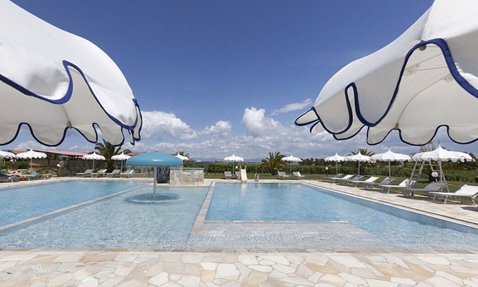 The property offers its guests plenty of space with 2 swimming pools for adults and children, sports, tennis, volleyball, children's playground, gym, massages, bike rental, barbecue, bar, a restaurant, extensive gardens and offers cozy rooms and apartments with private entrance and parking, private garden and porch of new construction.