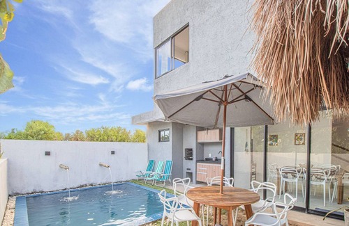 It comfortably accommodates up to 6 guests in its 3 suites, all equipped with a double bed. The house has a toilet, living room integrated with the kitchen, dining room and a complete gourmet area. In addition, you can enjoy a swimming pool and barbecue for moments of leisure.