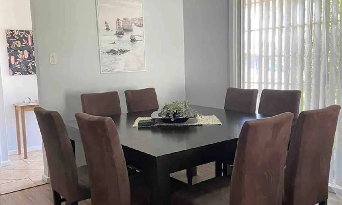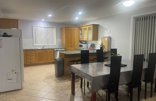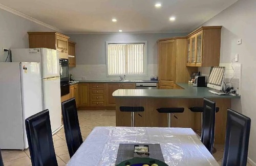 Cosy house with plenty of room to spread out and enjoy. Full kitchen & fully enclosed backyard with lawn area and undercover area with 8 seater outdoor setting and lounger & gas bbq. Kick a ball or relax and unwind after a day of activities.