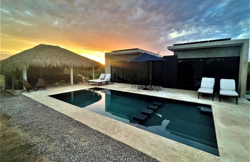 Casa Moonshine is a modern, self-sufficient home in the peaceful, off-grid community of Zacatitos on the East Cape of Baja.