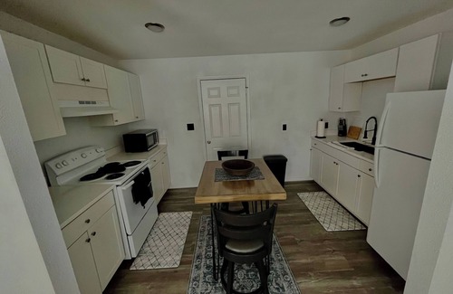 This home has a comfortable and spacious living room, a full sized kitchen, and a good sized bedroom with a bathroom just off the bedroom. There is a laundry room that is included with the home and reserved only for the guest. It is steps from the back door.