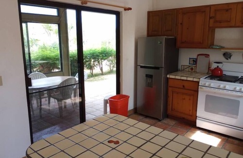 This self-contained ground floor unit offers peace and serenity on a large property in Cabo Pulmo. Large kitchen, dining area, two fully enclosed bedrooms, living area (sofa and love seat) and enclosed bathroom. Lovely tile walled outdoor shower. Located on a large property, isolated from neighbors, the front and back of the unit open onto private patios and beautiful landscape.