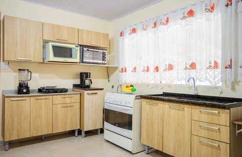 -Cozinha completa com vários eletrodomésticos e utensílios para preparar as suas refeições favoritas.